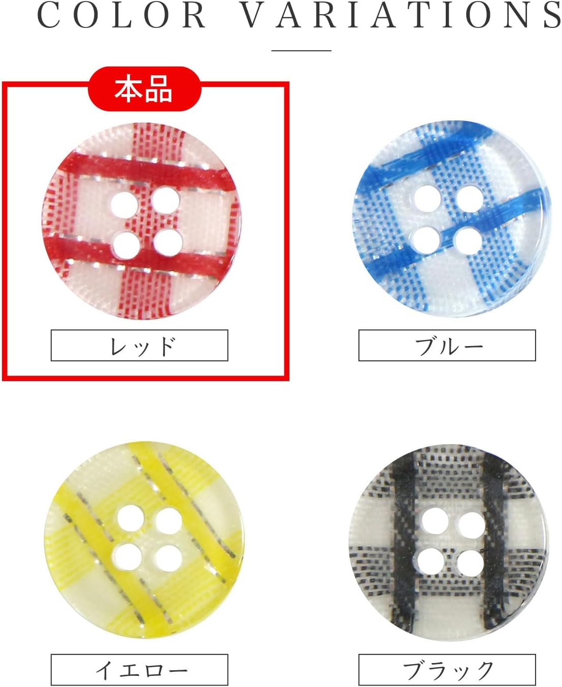 四つ穴ボタン ギンガムチェック フチなし【レッド】赤 15個入り【12mm】ランダム 樹脂製 手芸 かわいい おしゃれ きらきらぷんぷん丸 B-1262