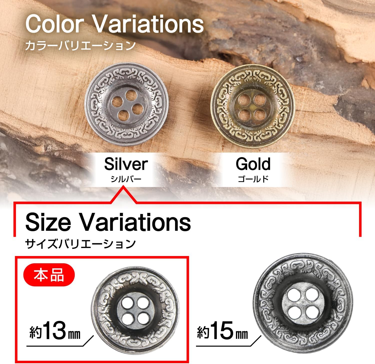 装飾メタルボタン 四つ穴【シルバー】銀 丸ボタン 金属 手芸 アンティーク 飾り 8個入【13mm】きらきらぷんぷん丸 B-1268 [B-1268]