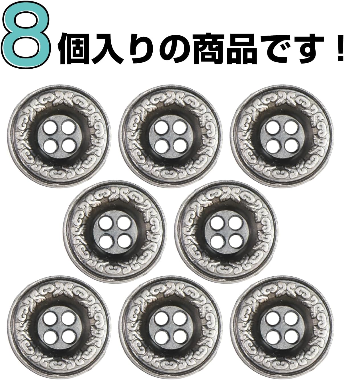 装飾メタルボタン 四つ穴【シルバー】銀 丸ボタン 金属 手芸 アンティーク 飾り 8個入【13mm】きらきらぷんぷん丸 B-1268