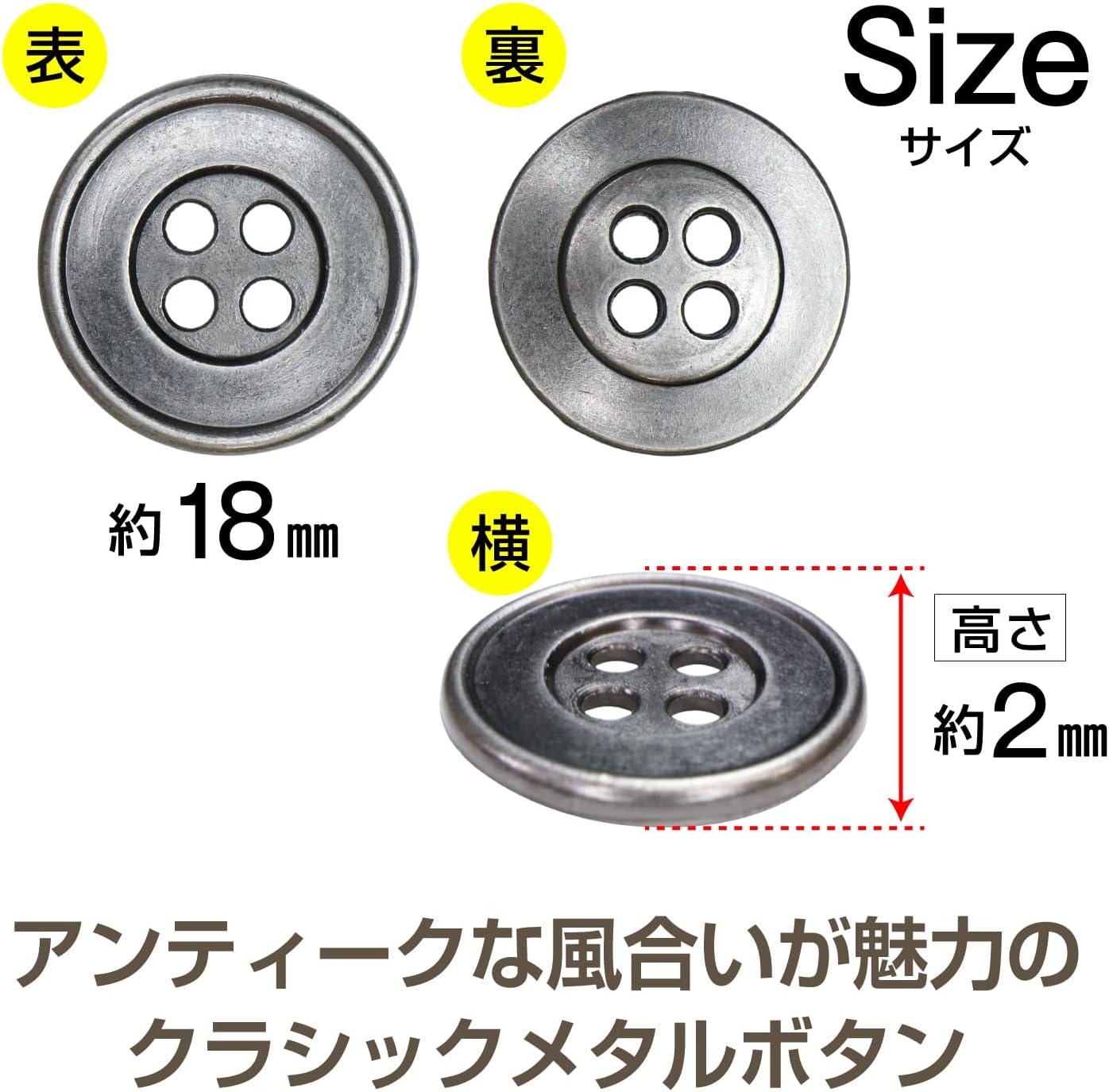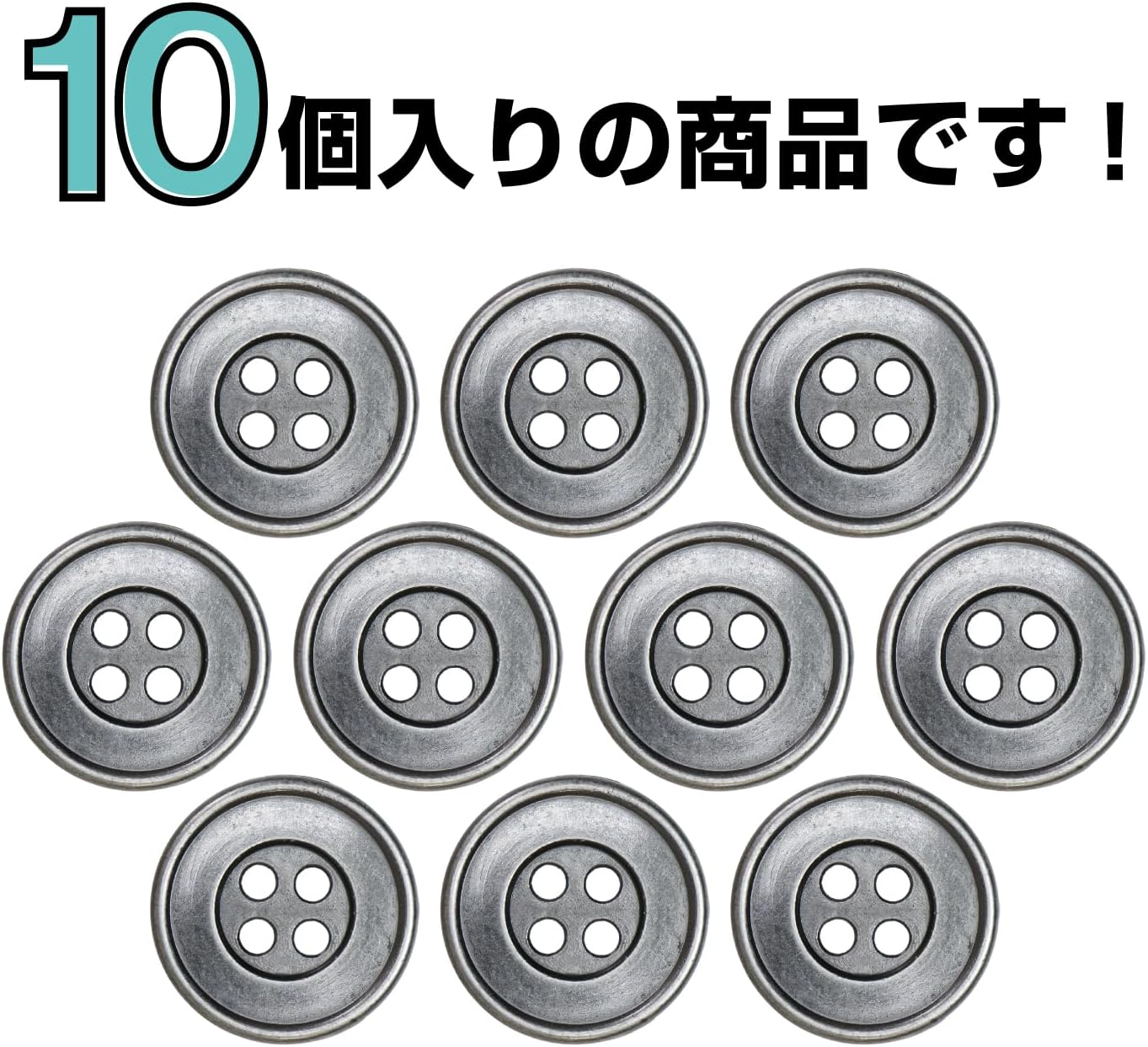 メタルボタン 四つ穴 シンプル【 アンティークシルバー】銀 丸ボタン 金属 手芸 10個入【18mm】きらきらぷんぷん丸 B-1274