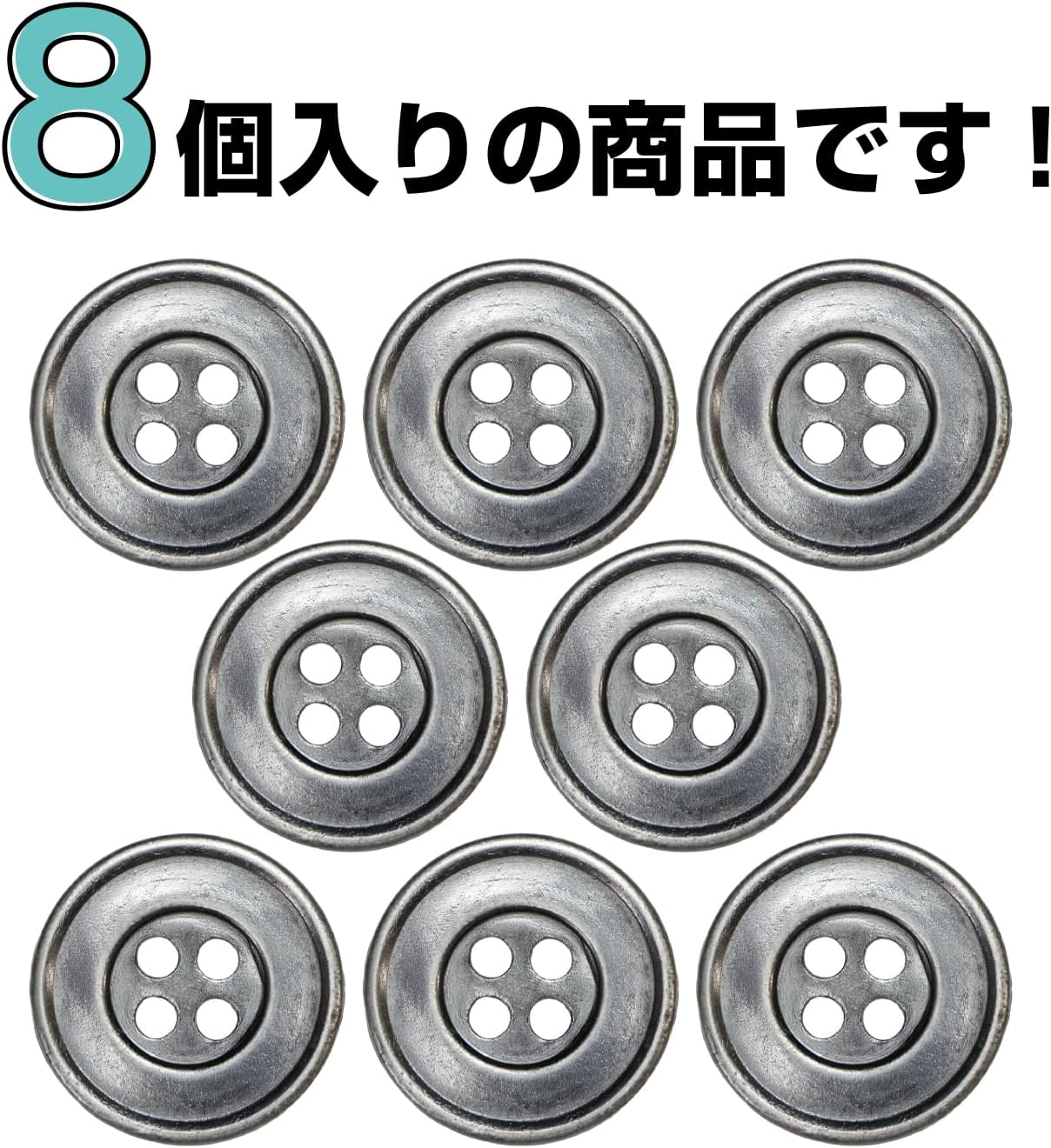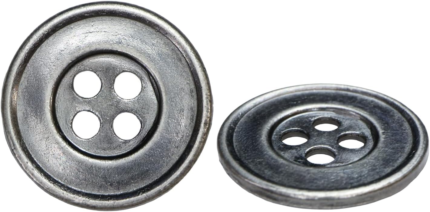 メタルボタン 四つ穴 シンプル【 アンティークシルバー】銀 丸ボタン 金属 手芸 8個入【20mm】きらきらぷんぷん丸 B-1275