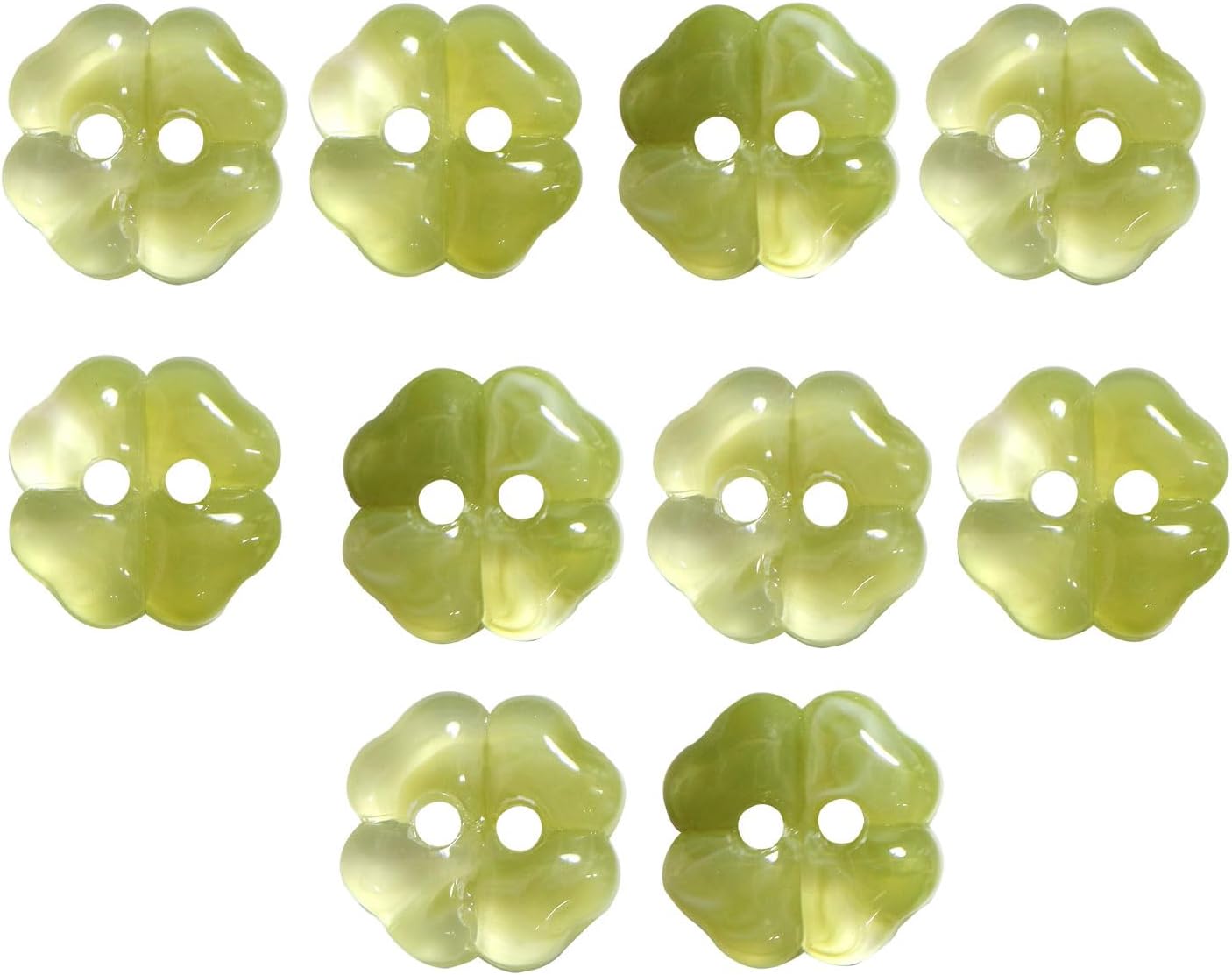 二つ穴ボタン 四つ葉 クローバー【グリーン】緑 10個入り【12mm】マーブル模様 樹脂製 手芸 かわいい おしゃれ きらきらぷんぷん丸 B-1282