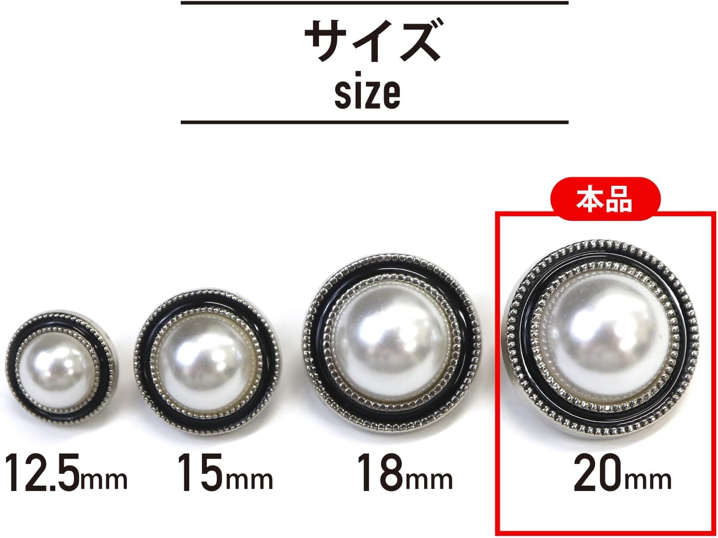 パールボタン 装飾 【シルバー 黒フチ】 ホワイト 白 パール 6個入り 【20mm】ビジュー 飾り 縫製 袖口 きらきらぷんぷん丸 B-152 [B-152]