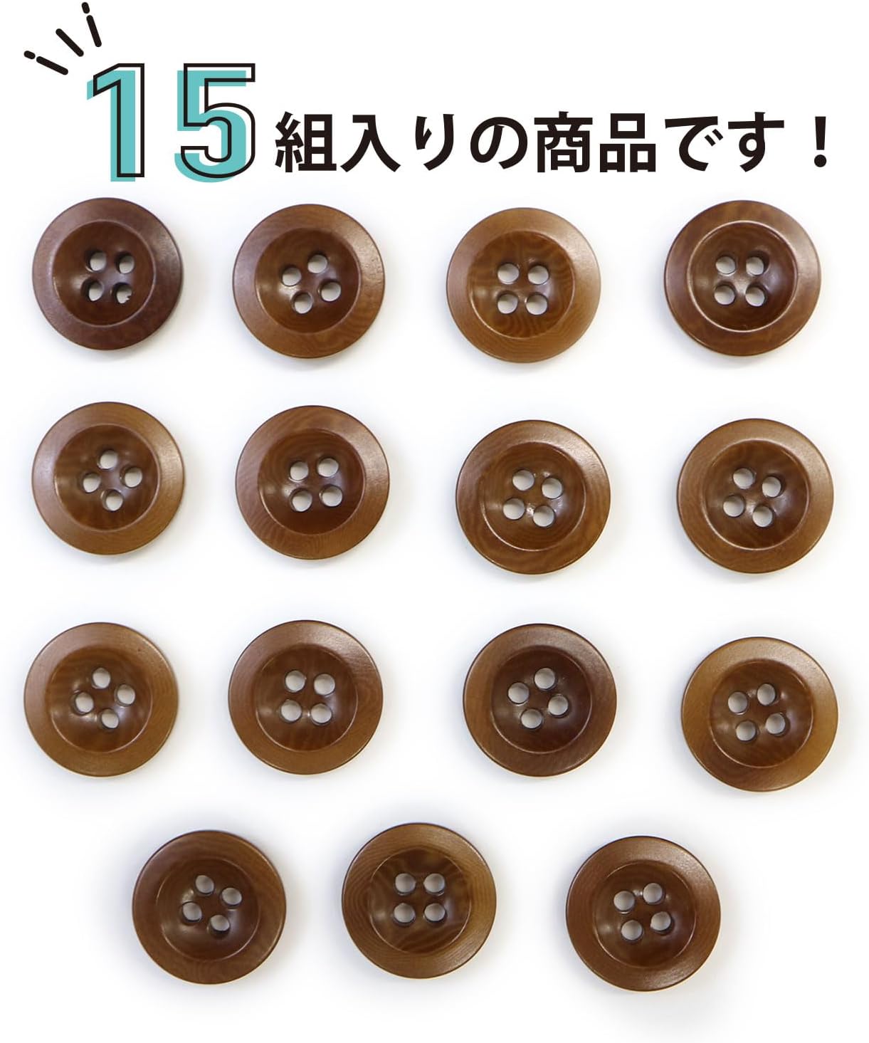 ナットボタン【ブラウン】四つ穴ボタン 茶色 ベーシック カラーボタン シンプル ボタン 手芸 15個入り【15mm】ボタンマート B-446