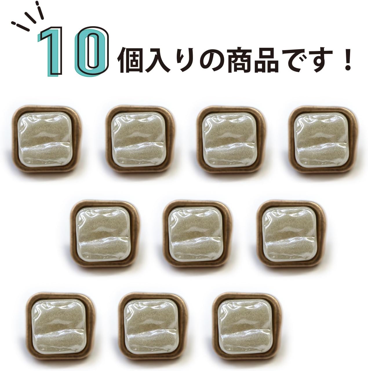 装飾ボタン 金属 足つき【ホワイト 凹凸あり】金フチ 四角 スクエア ボタン おしゃれ アンティーク レトロ 手芸 10個入り【12.5mm】ボタンマート B-453