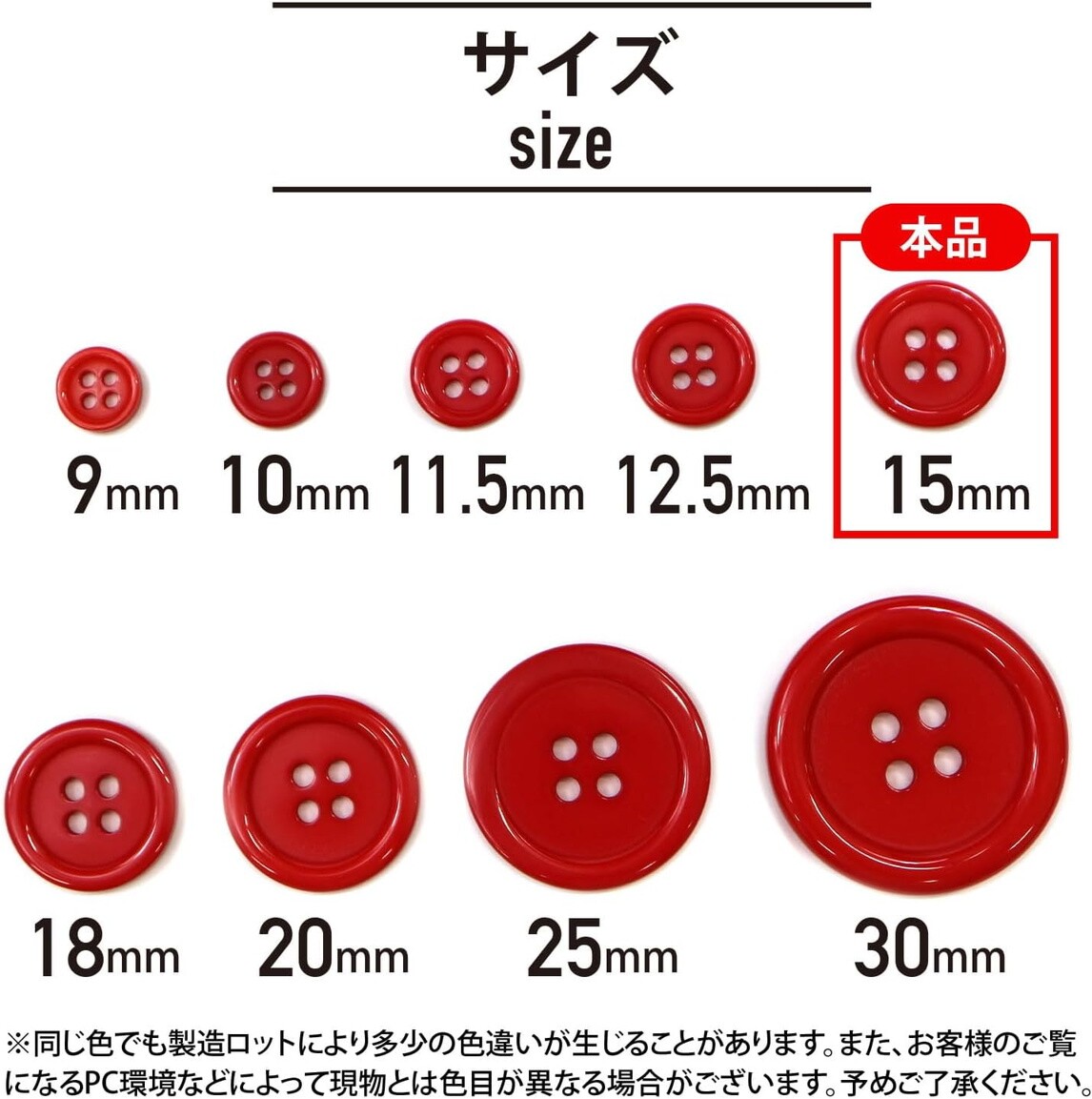 四つ穴ボタン 【レッド】 赤 ツヤあり カラー ボタン シャツボタン 15個入り 【15mm】 ボタンマート B-830 [B-830]