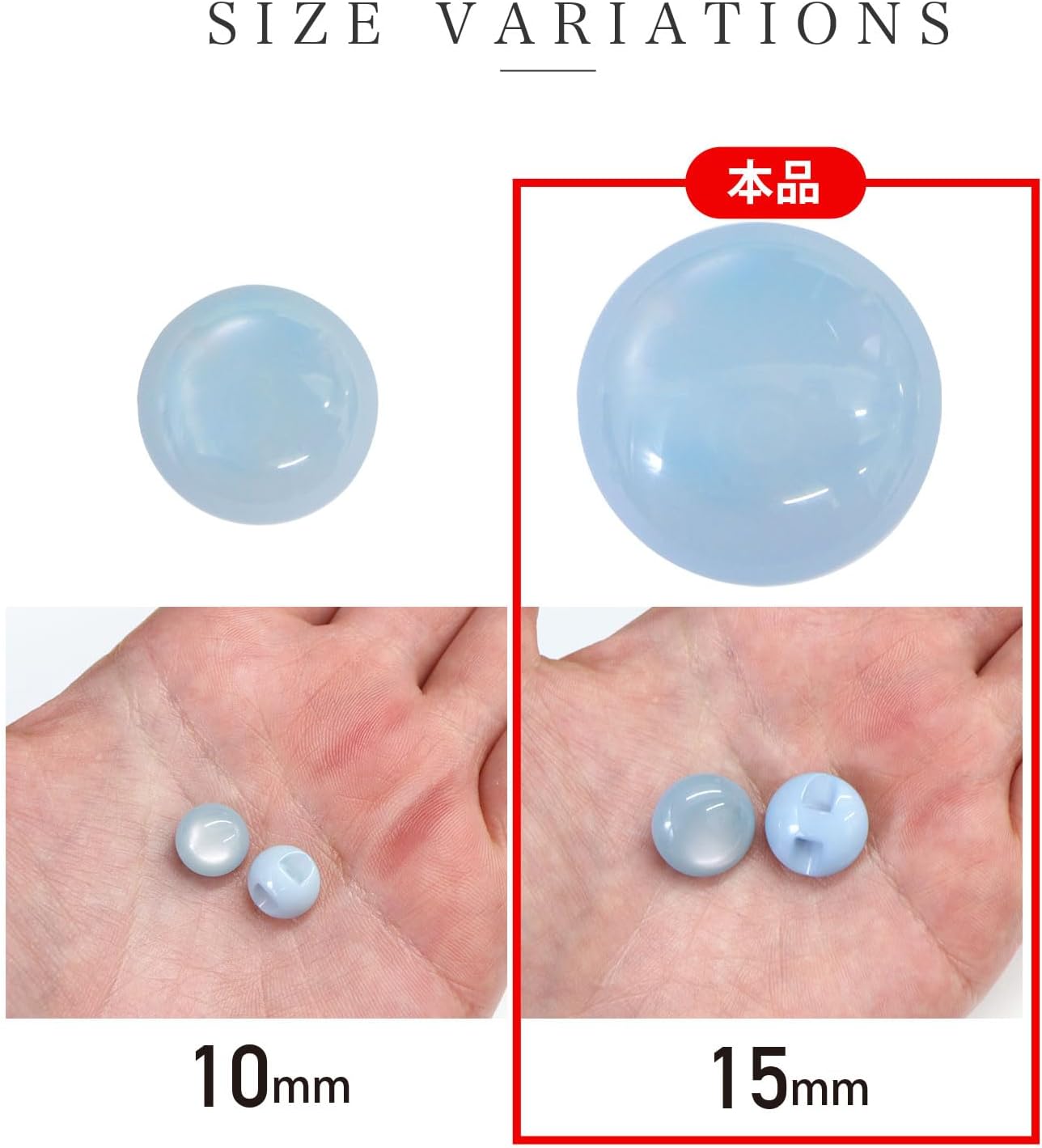 【特 徴】光がやわらかく反射し、見る角度によって輝きが変わるクリアボタンです。両面ふっくらと丸みを帯びたドーム型デザインが特徴的で、上品で存在感のあるツヤ感が、手作りアイテムを美しく引き立てます。
