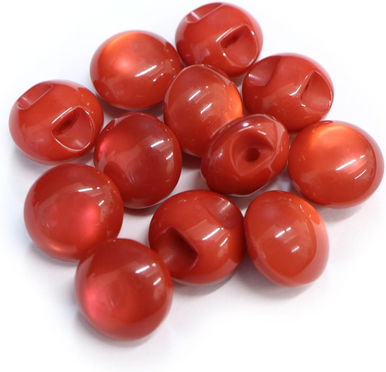 カラークリアボタン【レッド】丸型 裏穴 トンネル 12個入り【10mm】光沢 立体 3D 手芸 きらきらぷんぷん丸 B-1162