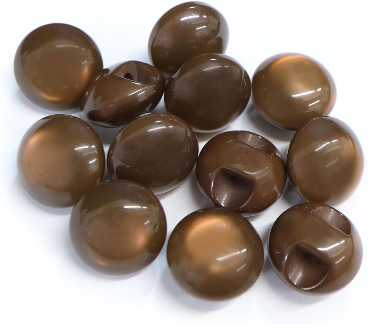 カラークリアボタン【ブラウン】丸型 裏穴 トンネル 12個入り【10mm】光沢 立体 3D 手芸 きらきらぷんぷん丸 B-1163