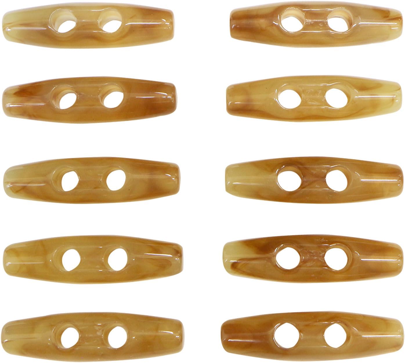 トグルボタン 39mm 10個入り 【ライトブラウン&ブラウン】 茶色 マーブル模様 水牛調 アクリル樹脂製 留め具 ダッフルコート 手芸 きらきらぷんぷん丸 B-1164