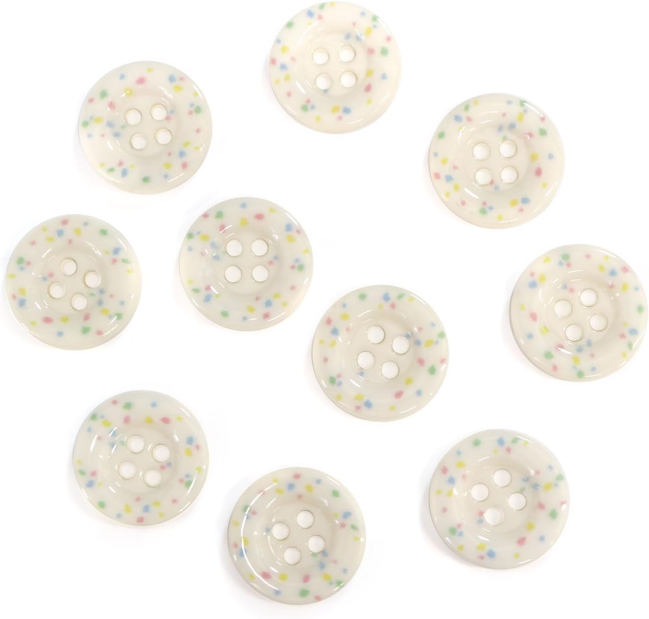 四つ穴ボタン ランダムドット柄 パステルカラー アイボリー 10個入り【15mm】樹脂製 手芸 おしゃれ 可愛い きらきらぷんぷん丸 B-1174
