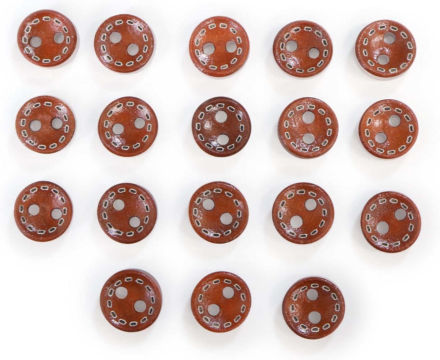 ウッドボタン 二つ穴 点線模様【レッドブラウン】赤茶色 皿型 18個入り【10mm】木製 手芸 おしゃれ 可愛い きらきらぷんぷん丸 B-1187