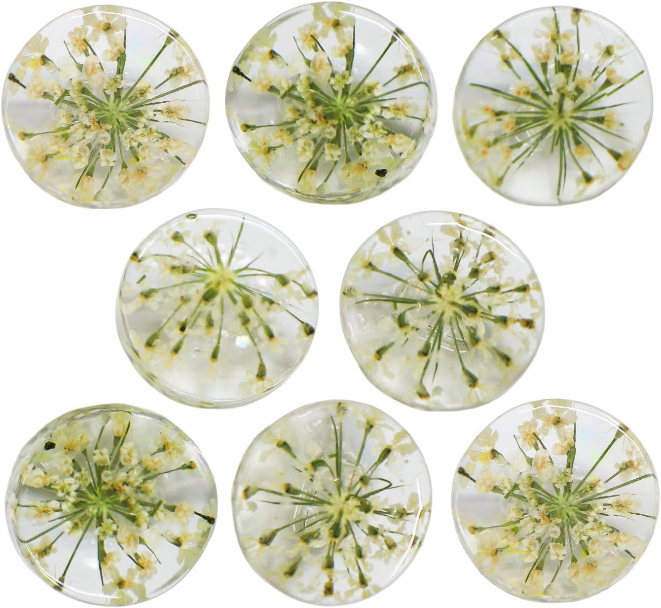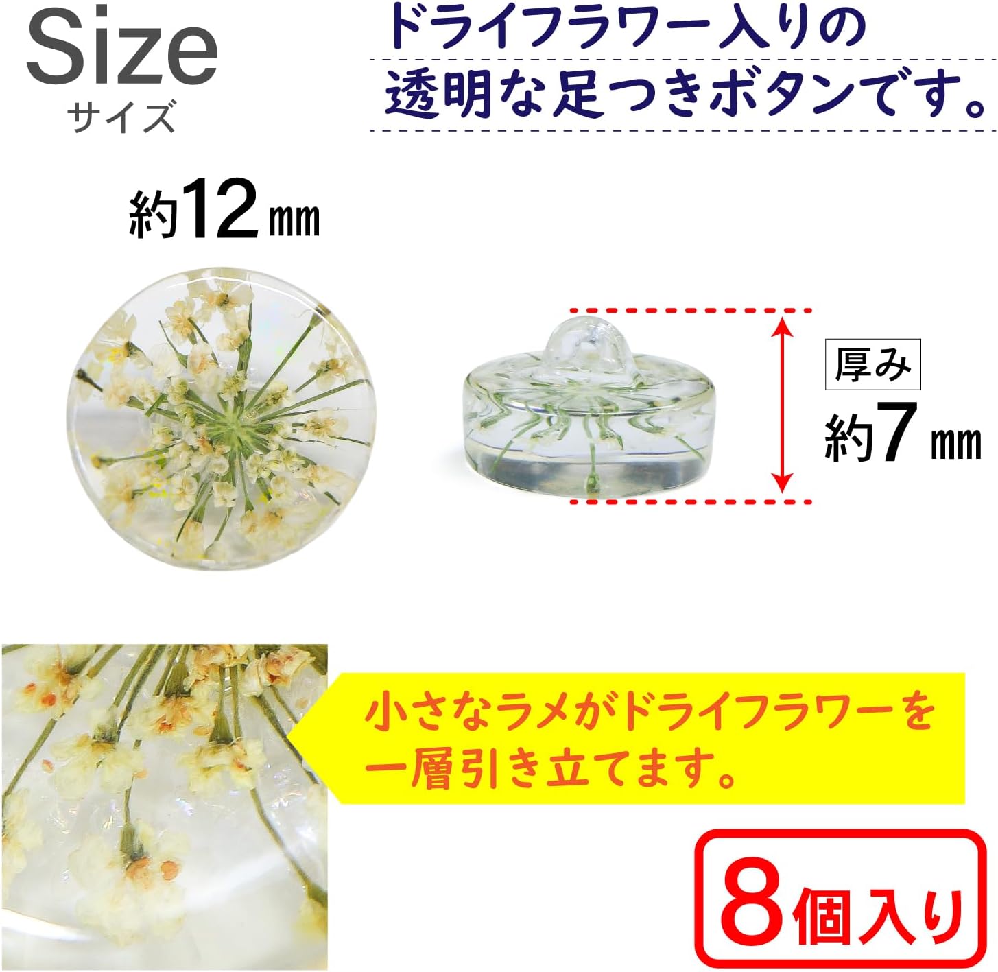 足つきボタン ドライフラワー【アイボリー】8個入り 白 花【12mm】手芸 樹脂製 可愛い おしゃれ きらきらぷんぷん丸 B-1205