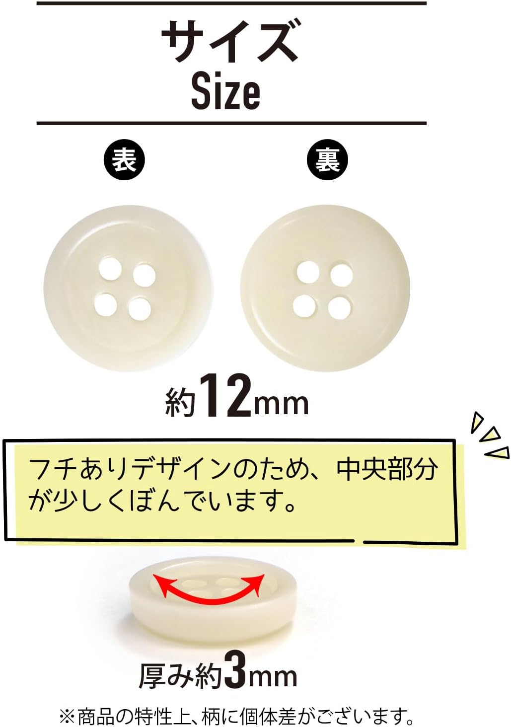 ナットボタン 四つ穴【アイボリー】10個入り 白 マット カラー シャツ ブラウス 【12mm】手芸 おしゃれ 可愛い きらきらぷんぷん丸 B-1214 [B-1214]