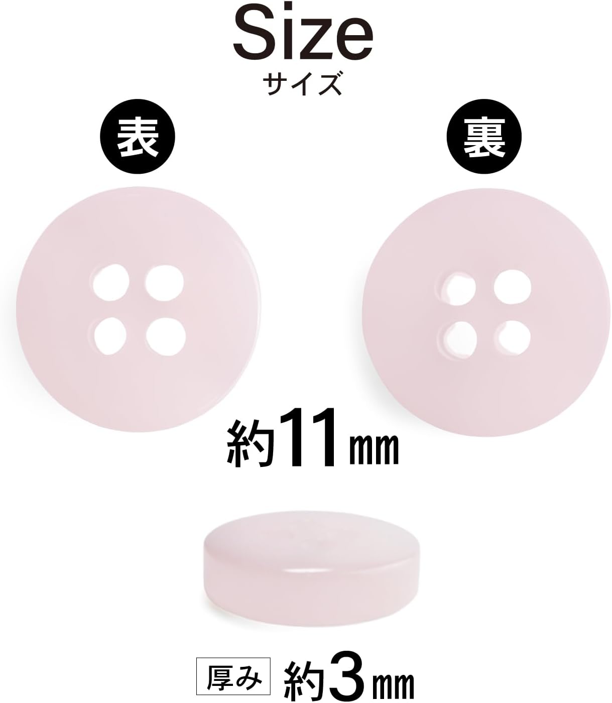 四つ穴ボタン 11mm 【ピンク】15個入り クリア 半透明 シンプル 樹脂 シャツ ブラウス おしゃれ 可愛い きらきらぷんぷん丸 B-1223