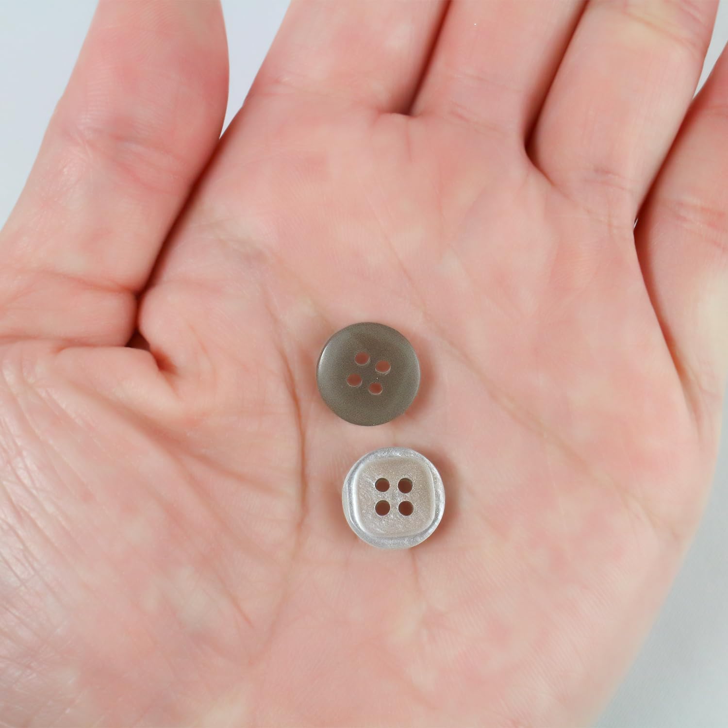 【特徴】落ち着いた色合いと柔らかな艶感が特徴の四角フチボタンは、 シャツや手芸作品などにぴったりのナチュラルデザインです。