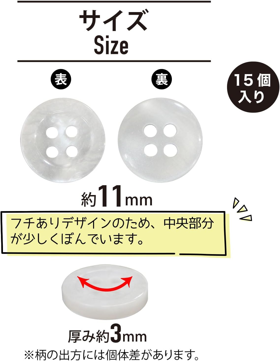 【サイズ】約11mm 、厚み約3mm 【数量】15個入り