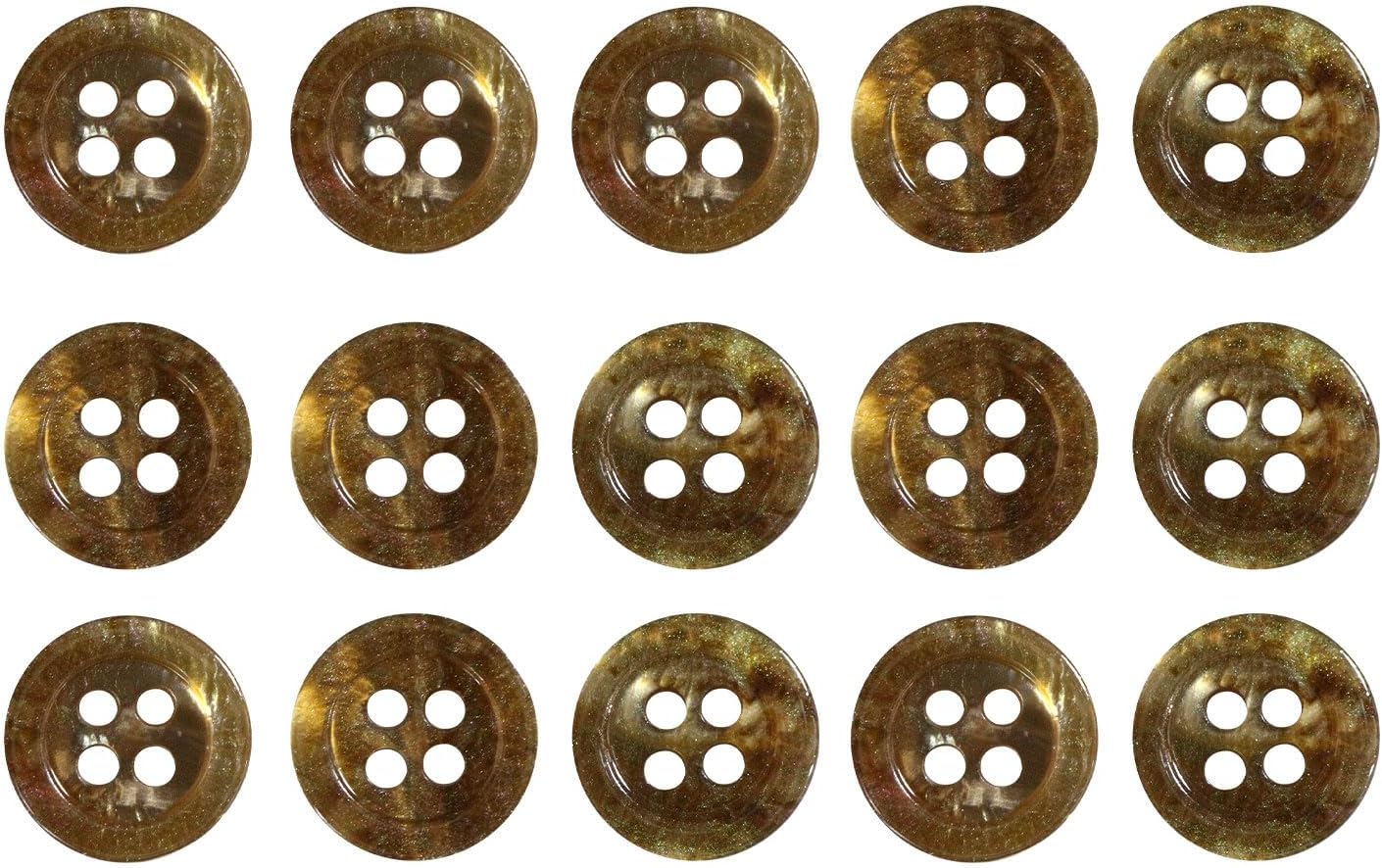 四つ穴ボタン マーブル 光沢【ブラウン】茶色 15個入り【11mm】ツヤあり 樹脂製 手芸 おしゃれ きらきらぷんぷん丸 B-1244