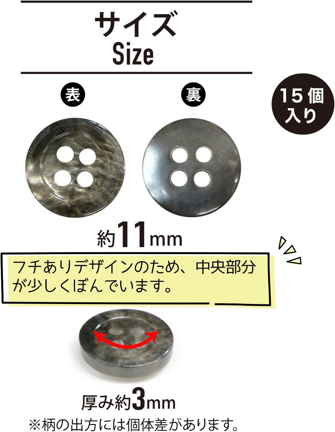 四つ穴ボタン マーブル 光沢【グレー】灰色 15個入り【11mm】ツヤあり 樹脂製 手芸 おしゃれ きらきらぷんぷん丸 B-1245 [B-1245]