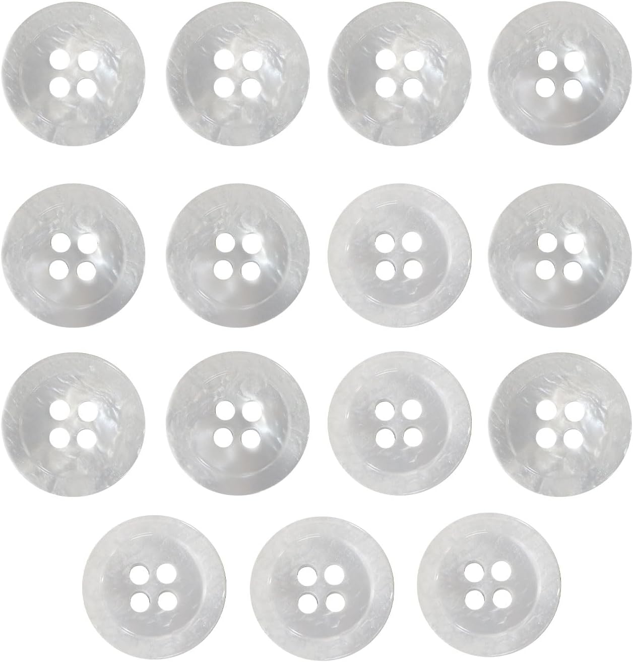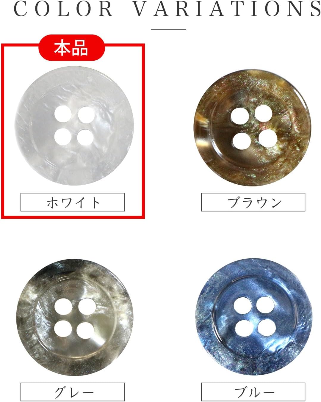 四つ穴ボタン マーブル 光沢【ホワイト】白 15個入り【15mm】ツヤあり 樹脂製 手芸 おしゃれ きらきらぷんぷん丸 B-1247
