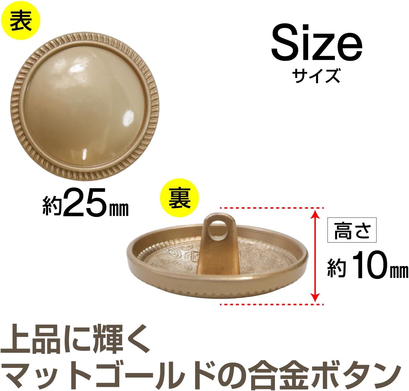 メタルボタン フチあり【マットゴールド】金 丸型 足つき シャンクボタン 金属 メタル 飾り 手芸 6個入【25mm】きらきらぷんぷん丸 B-1254